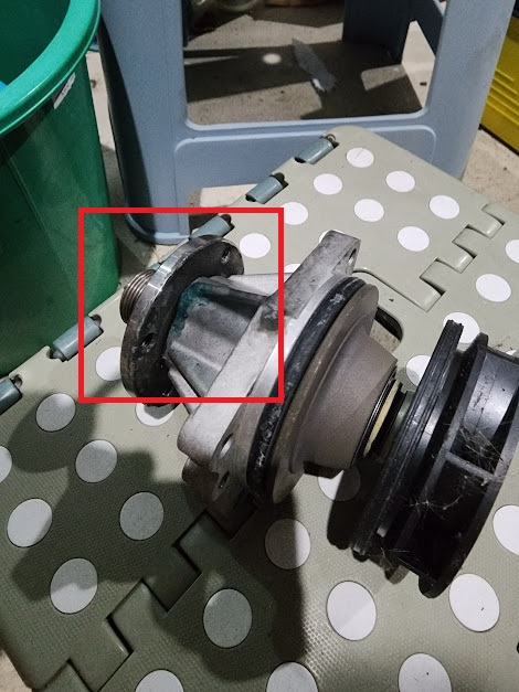 ลองรื้อปั๊มน้ำออกมาดู ลูกปืนคอปั๊มยังแน่นดี แต่สภาพซิลดูกรอบๆ